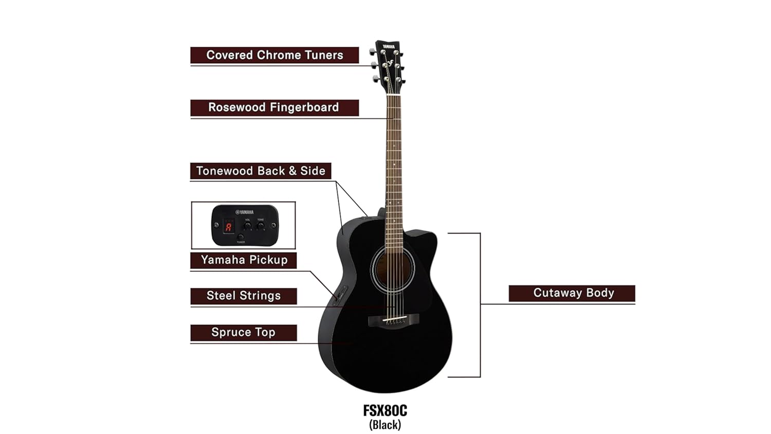 Yamaha FSX80C Semi-Acoustic Cutaway Guitar โ Black Finish, 6 Strings, Full-Size, Built-in Pickup, Rich Tone, Comfortable Playability